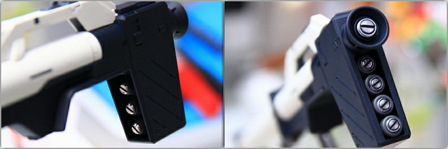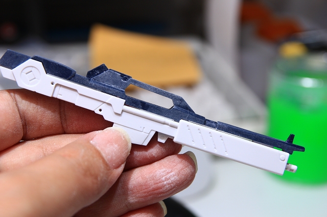 他のパーツにくらべてバズーカのパーツは精度が悪く、ディテールデザインもちょっとイマイチかな。キレイに整面します。