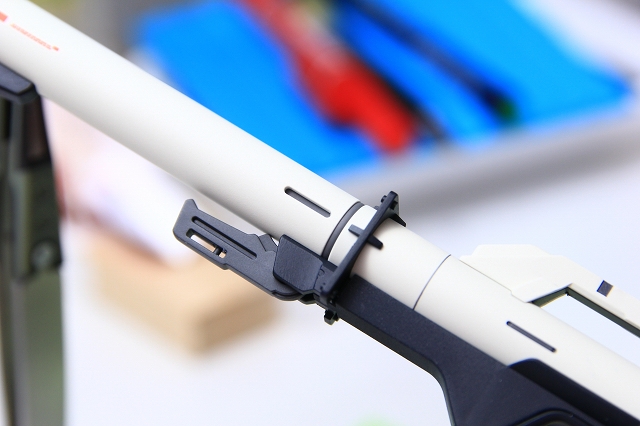 右手はライフルのグリップに固定しました。人差し指セフティを再現。