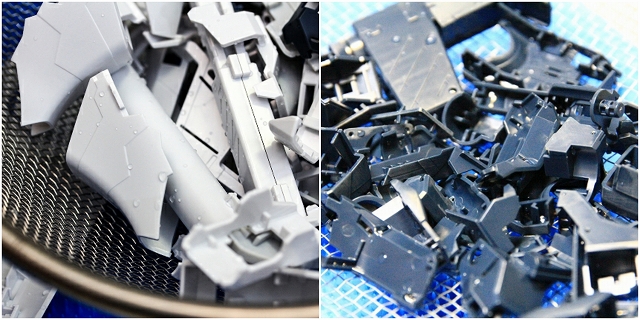 ある程度の加工が終わったら超音波洗浄。一つのキット製作で20回〜30回くらい超音波洗浄するかな。ちなみに自然換装よりも温風乾燥のほうがきれいに仕上がります。