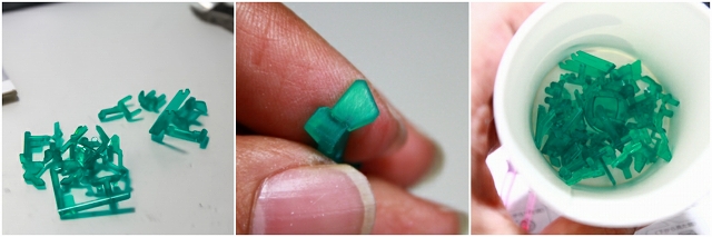 整形が終わったら超音波で洗浄。ちなみに歯ブラシゴシゴシよりも超音波洗浄のほうが数十倍きれいになります。肉眼でみただけでもハッキリ違いが出ます。
