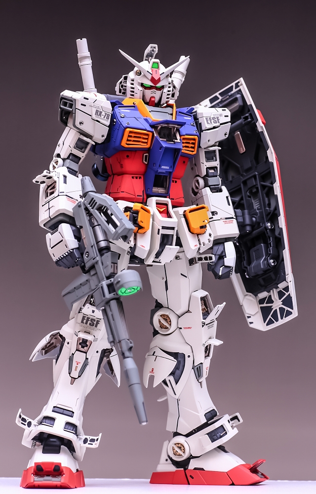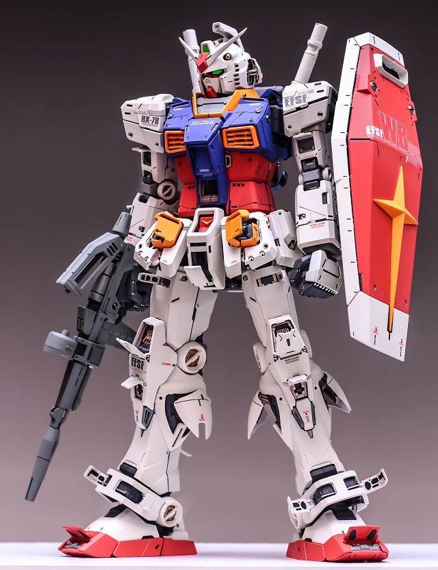 出来上がった完成品を眺めていると、大きいスケールならではの迫力と間延びさせない適度なディテールがあり、質も量も非常に充実しています。また「一時的な流行」に流されず、ファーストガンダムの原点を尊重した心意気を感じて、とても良いキットだと実感しました。