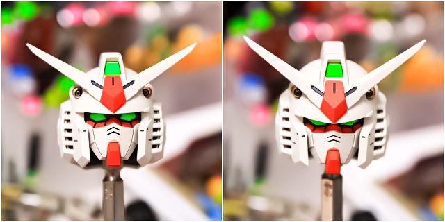ノーマルとの比較写真。キットもけっこう良い感じですが、個人的な好みでディテールの整理とカラーリングをアレンジしました。アニメ設定にも近づいたと思います。