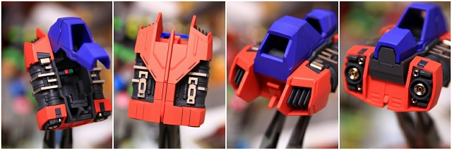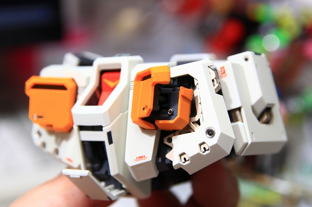 マニピュレータ。キットノーマルでは、クロムメッキ+グレー指+ネイビーブルーの手甲、とうい配色になっています。しかし指と手甲はほとんど真っ黒で見分けがつかない。さらにクロムメッキとのコントラストが強すぎて、メリケンサックを握ってるようにも見えます。