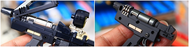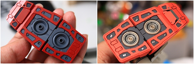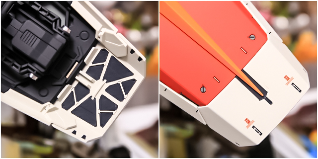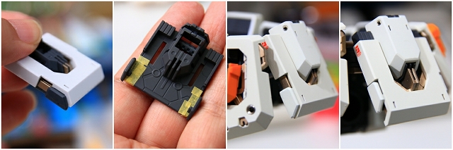 基本的な変形構造は近年のコアファイターと同様です。しかし機種のスライド可動が独特で、内部構造を知らないと変形が難しい(知っていても難しい)。簡単スムーズに変形でるように、可動部分の加工とグリスアップ。