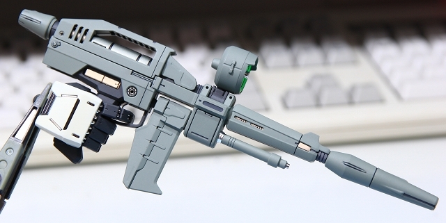 トリガーやセフティ(リリースシャフト?)の可動を調整しつつ、塗り分け。そのほか細かい部分でディテールの整理・塗り分け・メタルパーツ追加などなど。マニピュレータは固定指なので、ライフルをしっかり保持してくれます。