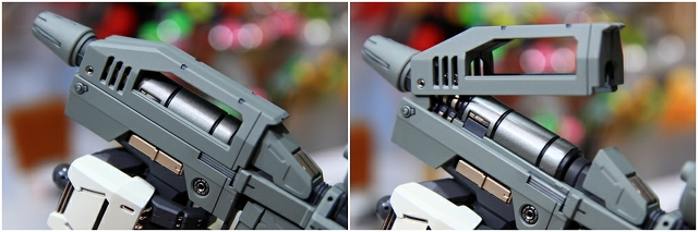 ミサイルランチャーの展開。ミサイルランチャーは組み立ても可動もキツキツなので、調整してあります。