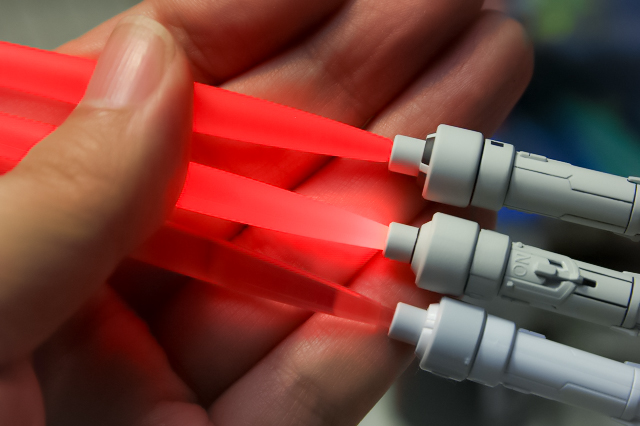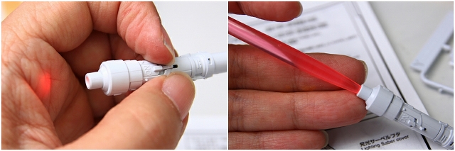 頭部や胸部の発光は設計に不具合があり残念な感じでしたが、サーベルはシンプルな構成で光量も十分です。