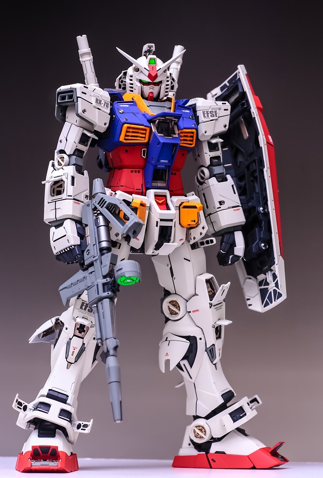 出来上がった完成品を眺めていると、大きいスケールならではの迫力と間延びさせない適度なディテールがあり、質も量も非常に充実しています。また「一時的な流行」に流されず、ファーストガンダムの原点を尊重した心意気を感じて、とても良いキットだと実感しました。