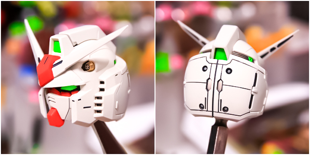 ノーマルは大河原的アニメ的表情です。首周りを改造し可動範囲拡大することで、アゴが引けるようになり、カトキハジメ版のような表情もできるようにしました。