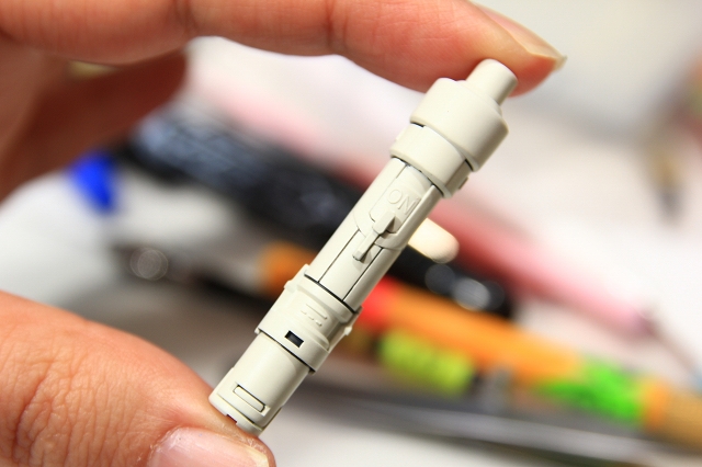 こちらが初期のサーベル。電池のフタが筒状でバネが内蔵型になっています。
