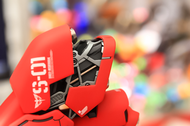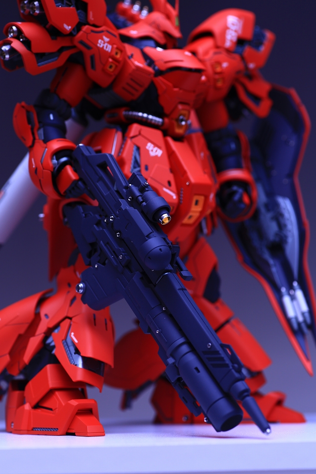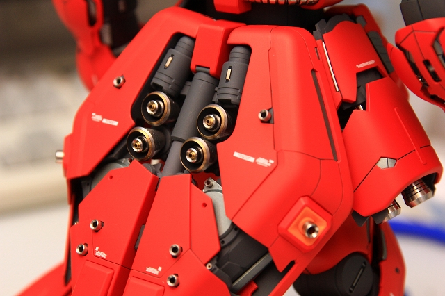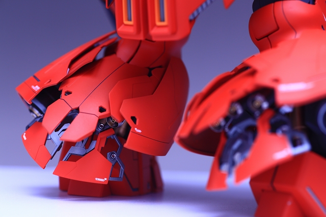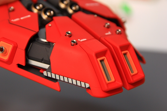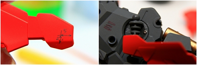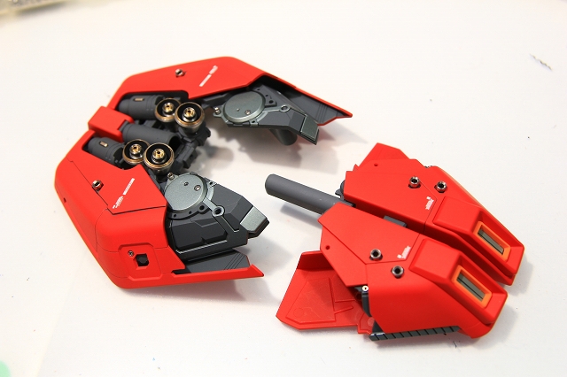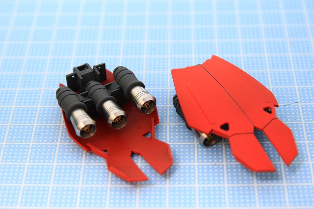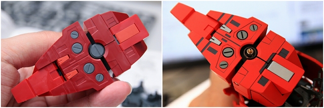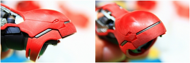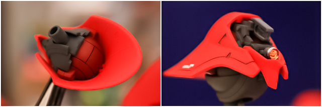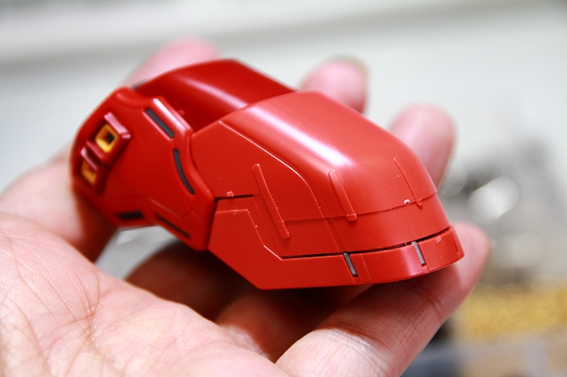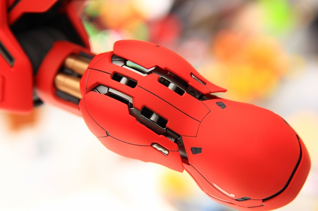 武器などのグレー系は手元カメラの色、本体の赤はどちらのカメラでも実物に近いです。もちろん完成品実物は肉眼で見てバランスの良い色に仕上げてあります。カメラ撮影についてはこれからも勉強してもっと良い写真が撮れるようにがんばります。カメラ余談おわりです。