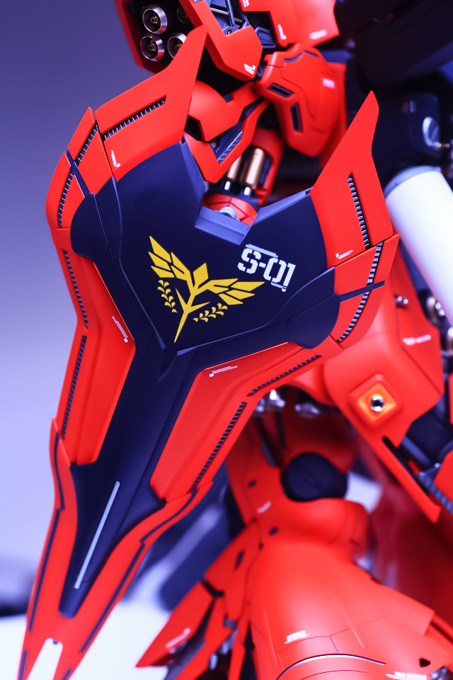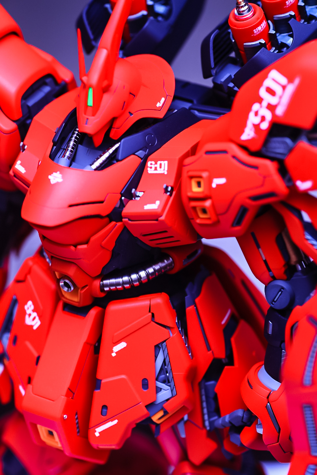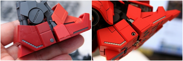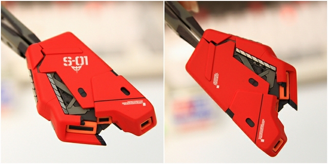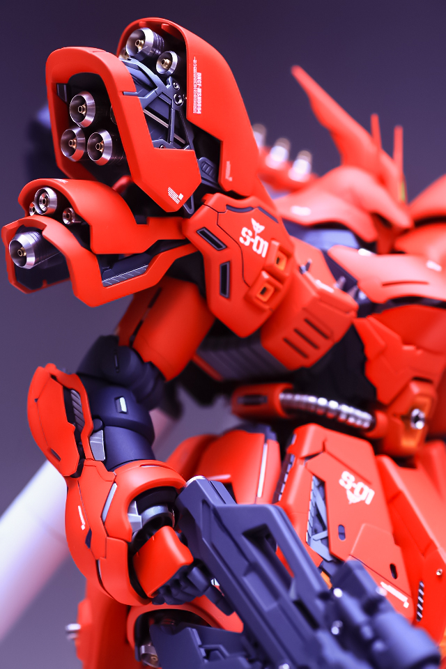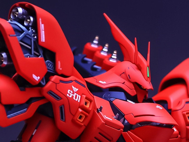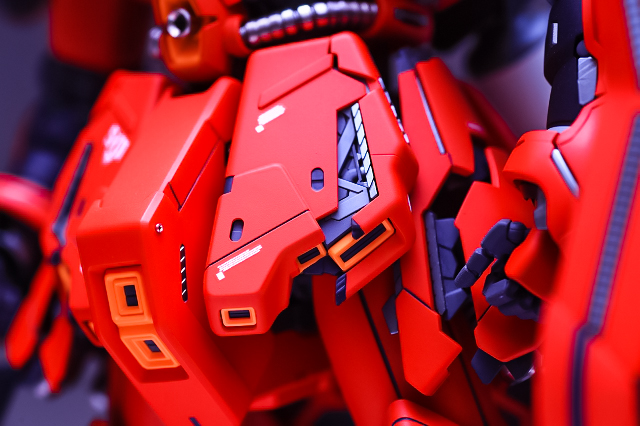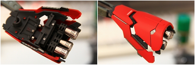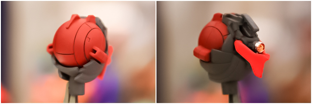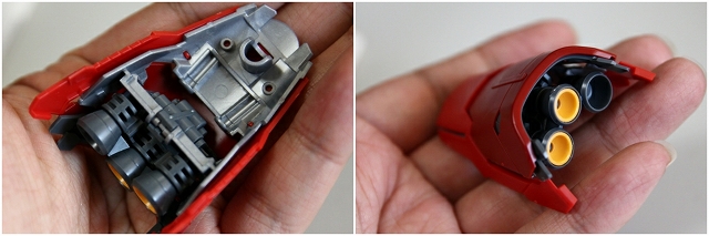 武器などのグレー系は手元カメラの色、本体の赤はどちらのカメラでも実物に近いです。もちろん完成品実物は肉眼で見てバランスの良い色に仕上げてあります。カメラ撮影についてはこれからも勉強してもっと良い写真が撮れるようにがんばります。カメラ余談おわりです。