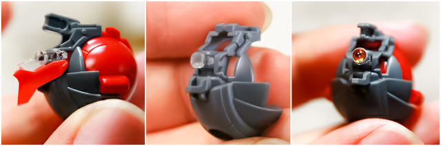 コクピットの球形は、アニメだと本体同色にみえたり、別の資料では濃い赤だったりと、いくつか存在するようです。「脱出ポッド」という役割を考えると「エマージェンシーカラーの鮮やかなオレンジ色」が思い浮かびますが、カラーシミュレーションしたら全く合わなかった。いろいろ試した結果、少し濃い赤色がいちばん良かったです。