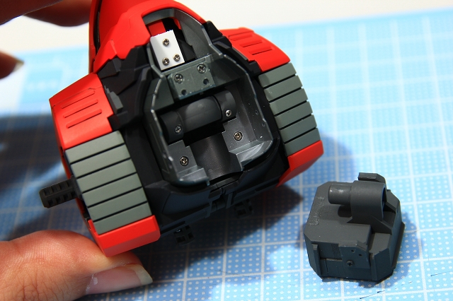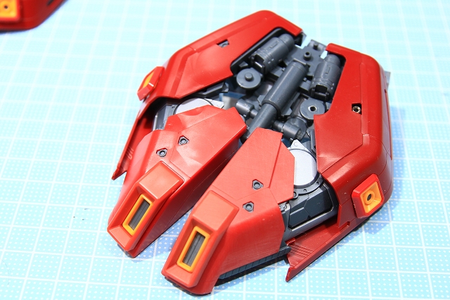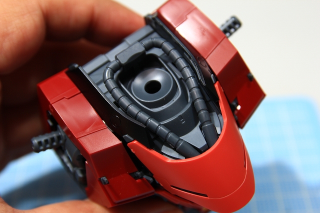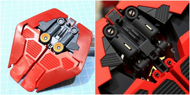 裏面にノズルがあるのも珍しくて「逆噴射」「パージ!」など機能を想像するのも面白いですが、模型的には全く見えなくなってしまうので、表面に移動してよかったと思います。裏側はディテールパーツを増やしました。