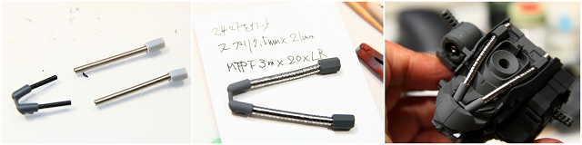 マウントを加工して、自作の「動力パイプ3mm3点セット」に置き換え。