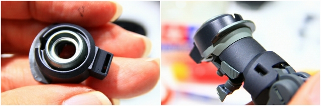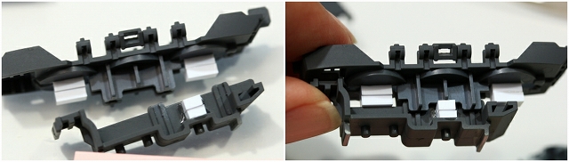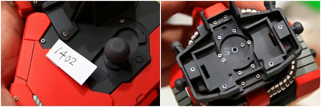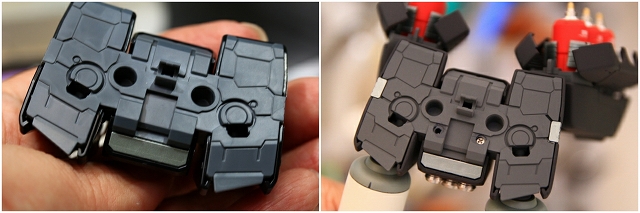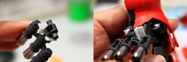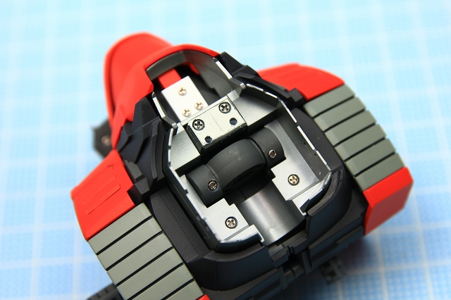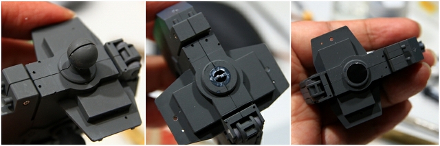 上半身側のボールジョイントの受け側のポリキャップもオミット。接続用のプレートを装着。これで上半身と下半身の接続が本来必要な強度に、それ以上に強固になりました。