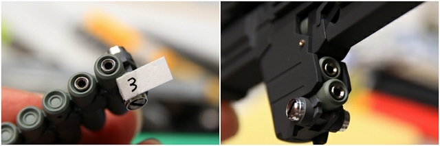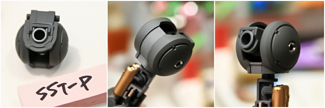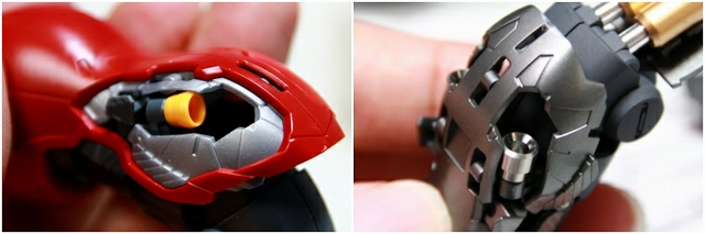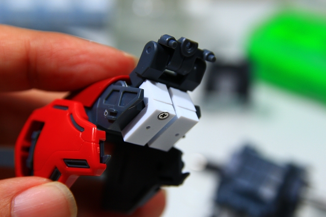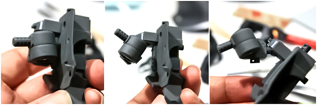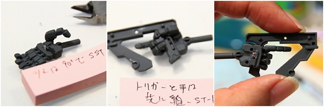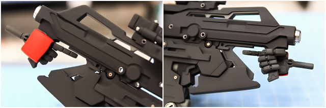 右手はライフルグリップに固定。手首のボールジョイントではライフルを保持できないので、軸ジョイントに変更。