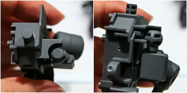 「可動が多いほど偉い」みたいな固定観念が負の方向にこじれて、ここの可動だけで7自由度もあります。これが位置決めを不安定にさせ、パーツポロポロの原因になっています。
