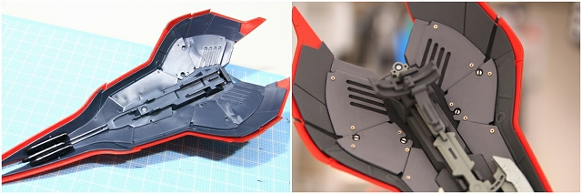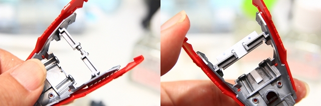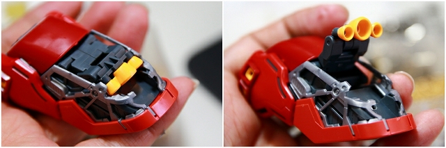 フレームが上下分割されててスライド昇降。カウリングと内部サポートが開閉。ギミック満載です。