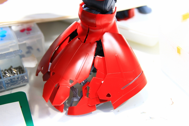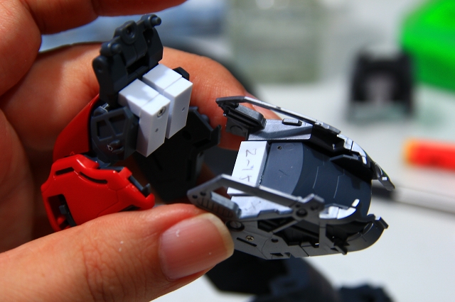 まずは各パーツのデザイン的な意味や、金型由来の誤差などを把握します。特に組み立て途中で見えなくなる部分などは何十回と組立分解を繰り返します。そうして十分に理解したつもりでも、工作を勧めていくうちに「あ、違った。やり直しだ」ってことも多いです。こういうのはすべてのプラモデルに共通です。