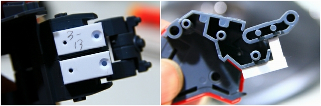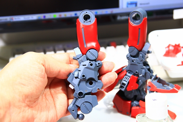 開き具合の調整、足本体とのスライド量の調整、アトハメ加工。位置決めピッタリ。強度ガッチリ。内部にPPノズルCセット、フレーム部の塗り分け増加。