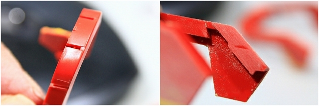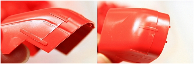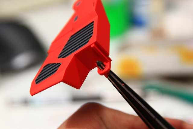 さらに表面の赤いパーツも程よく分割されていて工作や塗装ややりやすい。ありがたいですね。ただしこういう大きいパーツは経年劣化や熱などで歪みが出やすくその修正は難しいので、さらに分割して加工しやすくします。組立はブラケット追加とネジで固定。