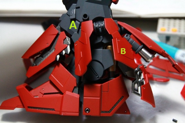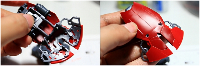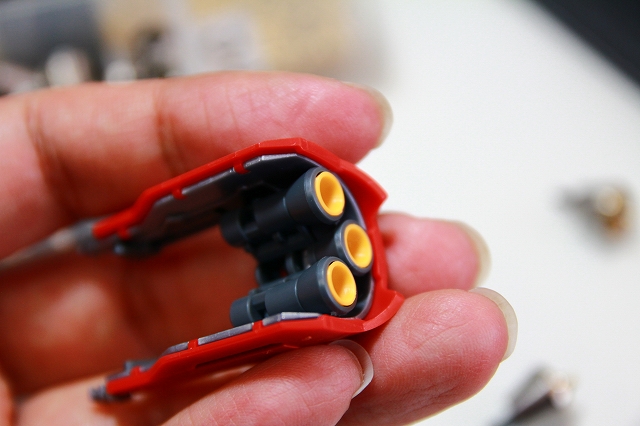 このキットはパーツ分割、色分け、レイヤー構造などがとても複雑で凝ったデザインになっています。しかし全ガンプラの共通の弱点、スナップフィットがきつくてパーツがハマらない、なのにポロポロ外れる、といった弱点があります。つまり可動軸だけでなく、固定組立部分も同様に強化が必要です。