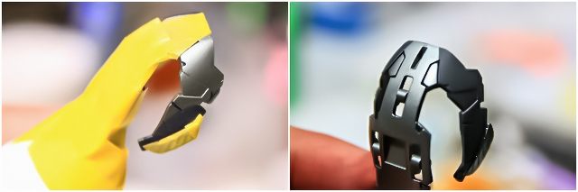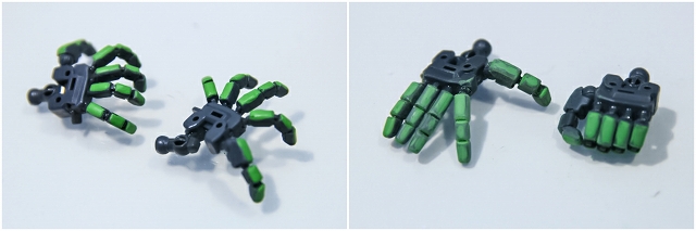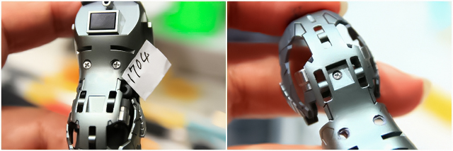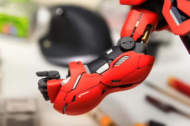 マニピュレータはシステムインジェクションですべての指がフル可動。当時は革新的技術で感動しました。が、ヤスリも塗装もできないので、改造塗装派には困った素材です。