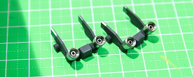 ガンプラ改造パーツ通販【ぷらもぷらす】の動力パイプ3点セットに変更。従来の「大中小の汎用オプションパーツ」ではなく、ガンプラ設計と金型に合わせて作ったガンプラ専用メタルパーツなので、当然ながらサイズピッタリです。