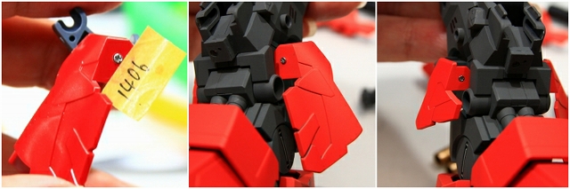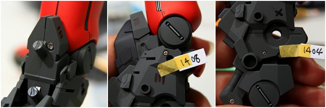 位置決めのスペーサー、固定強度のスペーサー、ネジで固定。カチカチになって気持ちがいいです。なお肩のロール可動(上下スイング)は残してあります。