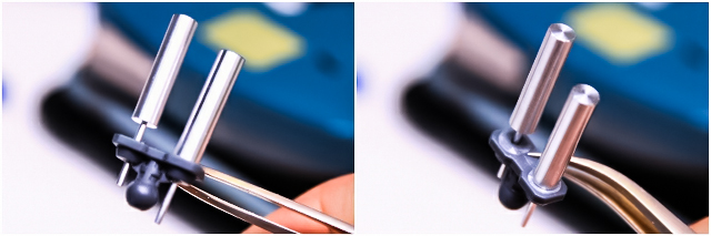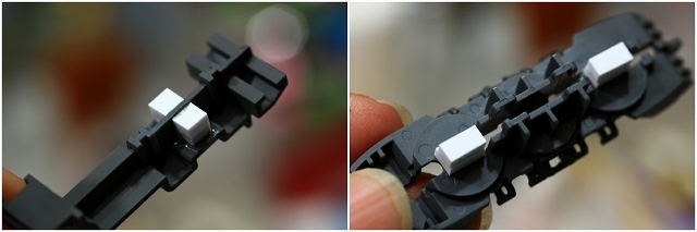 キットではできるだけフリクションを増やすためにボールジョイントがキツキツになってます。そのせいでポリキャップが大きく変形しています。写真では伝わらないですがポリキャップの四角いタブが3mmくらいズレちゃってます。普通にノーマルで組み立てようとしても組み立たない可能性もあります。仮に組めたとしてもぐにゃぐにゃです。