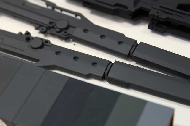 ちなみにライフルの色味(ホワイトバランス)がだいぶ違うのは、手元撮影と完成品撮影が別のカメラ・別の照明だからです。また僕のPCディスプレイはカラーキャリブレーションを行っていますが、スマホでは色味が違って見えます。つまりカメラやディスプレイの性質的に、ホワイトバランスを実物と同じに調整するのはほぼ不可能ということをご了承ください。そのうえで、制作風景と完成品はそれぞれ伝えたい内容が違うので、わかりやすく伝わるように写真を撮り分けています。(こういう場合、デジタルよりも紙媒体が便利ですね)