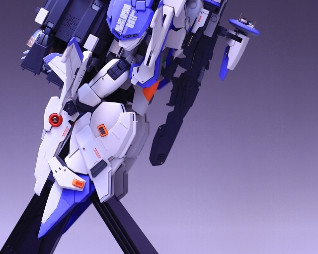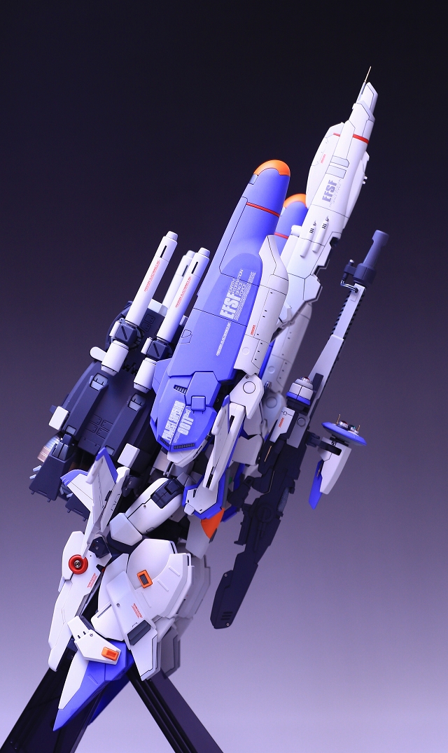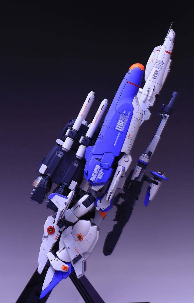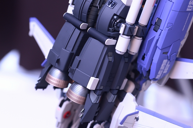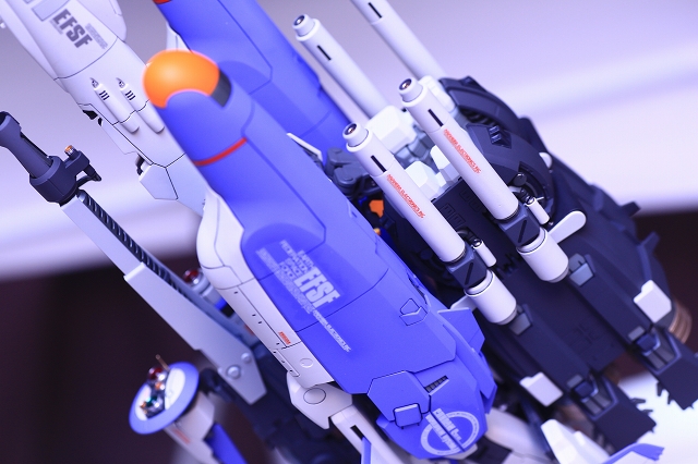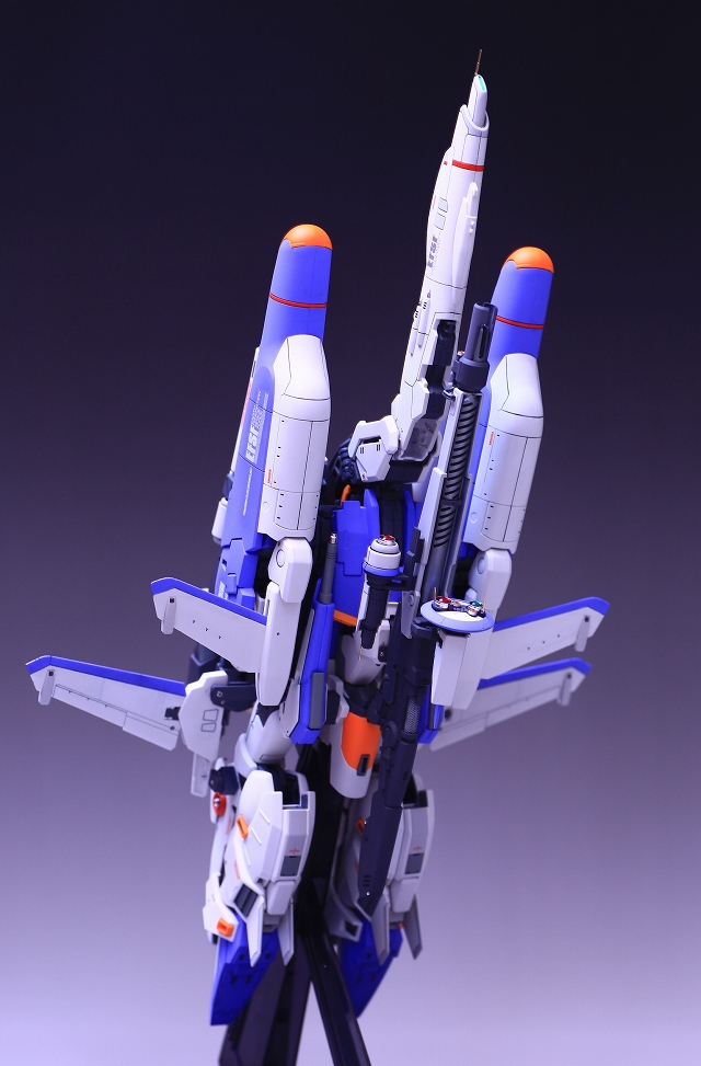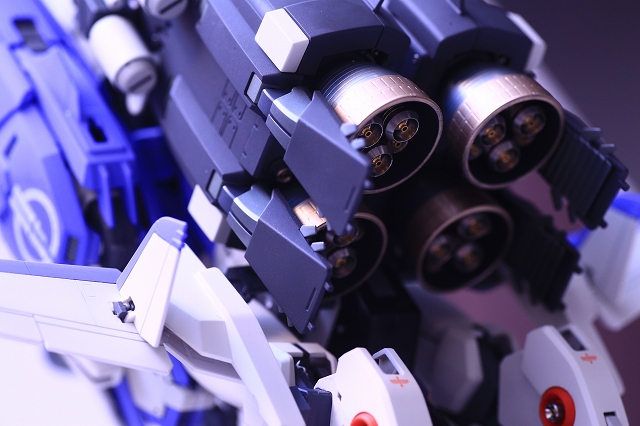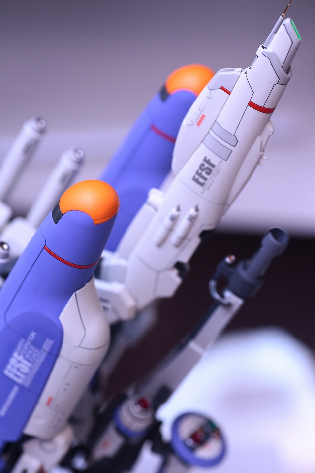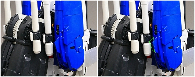 バックパック・ブースターの角度に注視してください。ノーマルは機体水平面に対し15度くらい傾斜してます。これをまっすぐ水平に改造します。