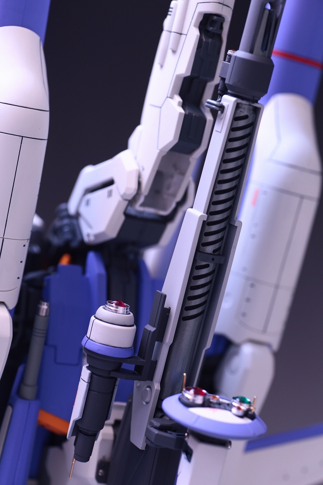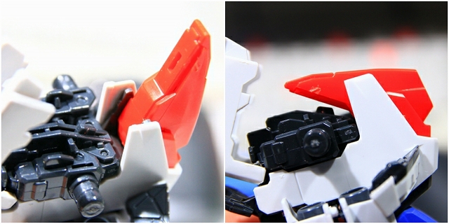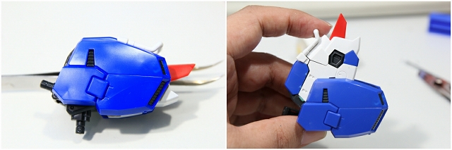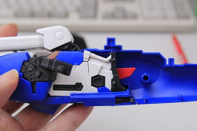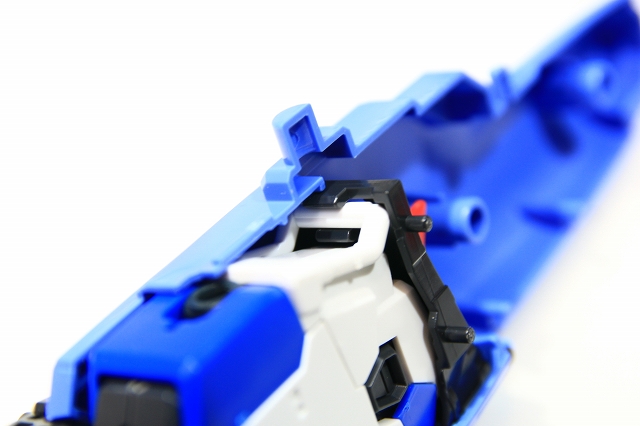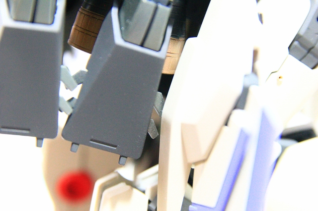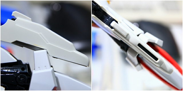 肩上面のウイングのフェアリングが、プロペラントタンクのフェアリングの凹凸にピッタリ固定される。なにげないC面にも、ちゃんと意味がある。