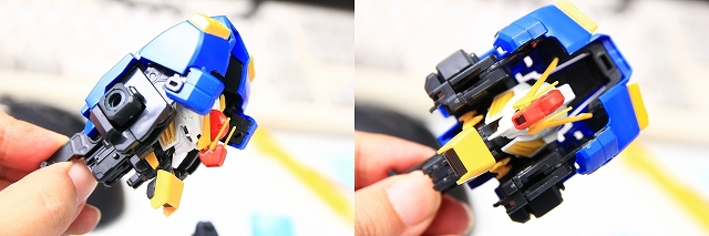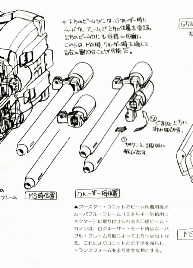 Gクルモードでは首周りが天地逆になります。正確には底面が前側になります。数ある変形MSのなかでも珍しいケースになので、この辺を作り込む場合はかなり複雑になりそうです。