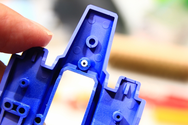 ここのポリキャップは固定したのであまり影響ないはずですが、さらにスペーサーを入れて物理的な可動ゼロに。裏側からポリキャップを固定するパーツもクリアランスをギリギリギチギチに調整してネジ固定。