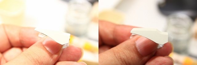 このキットに限らず、設定画やキットを眺めてて「ここは変えたほうがキレイになりそう」などと思うことはよくあります。以前はよく悩んだのですが、最近は「両方作って、良い方を採用」というスタンスです。というわけでテールスタビライザーはノーマルと天地逆の両方を再現できるように改造しました。