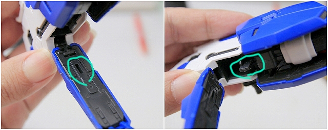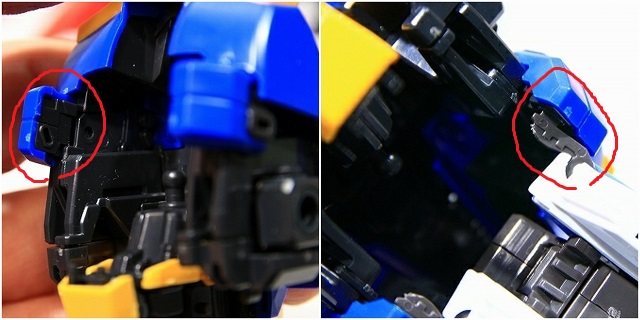 赤丸がコアファイターと胸がマウントする部分です。ただしノーマルだと強度が足りないので、