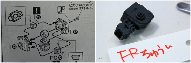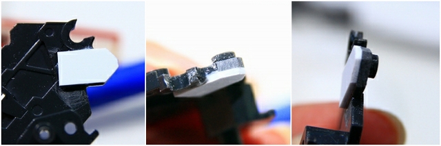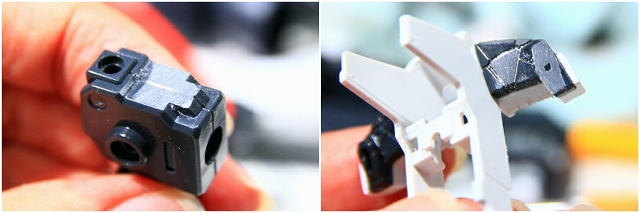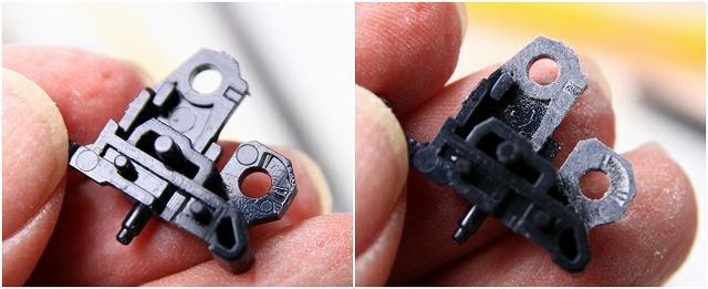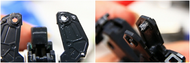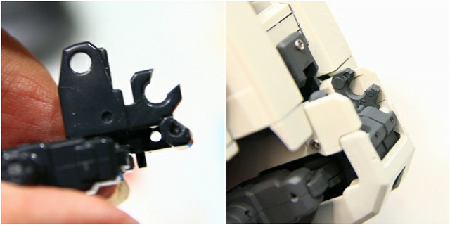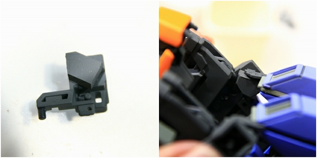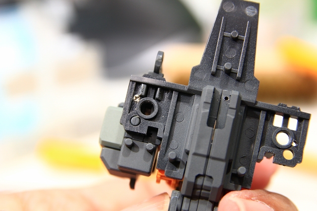 このパーツはノーマルだと99%破損するので注意。変形の複雑性、プラスチックの素材性、離型剤、金型劣化など、さまざまな原因で変形キットの限界の設計だとおもいます。