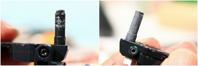左がストッパー未到達、右が硬さ調整して正しいストップ位置。微妙な差ですが重要なところなので正確さが必要です。