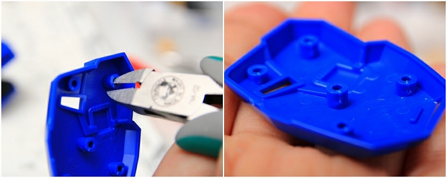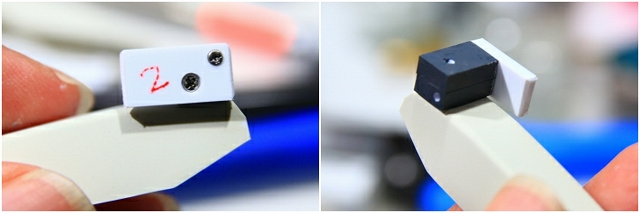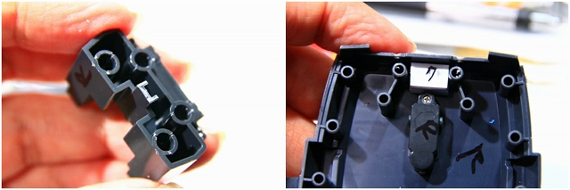 上面ユニットの位置やフィッティングがいまいち悪い。元々の固定ピンを切り取り、ラインも修正。