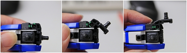 コクピット先端は90度回転し、ストッパーで結合されます。
