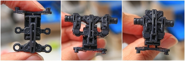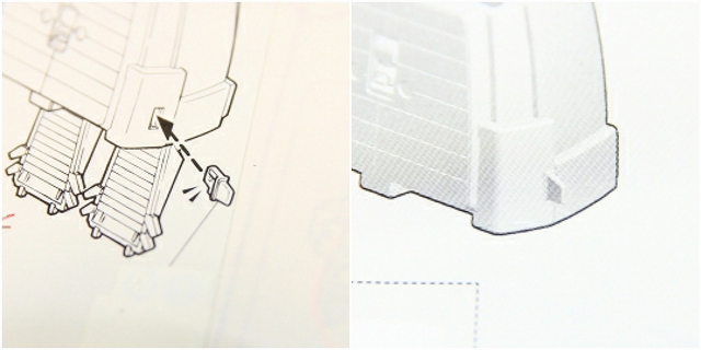 裏側のタンクの一部が別パーツになっています。どうしてこんなパーツ構成になったのか、明確にはわかりませんでした。たぶんマウントからの荷重が、タンクパーツが外れる方向に働くので、その抜け防止のためだと思います。(また時間ができたら検証します)