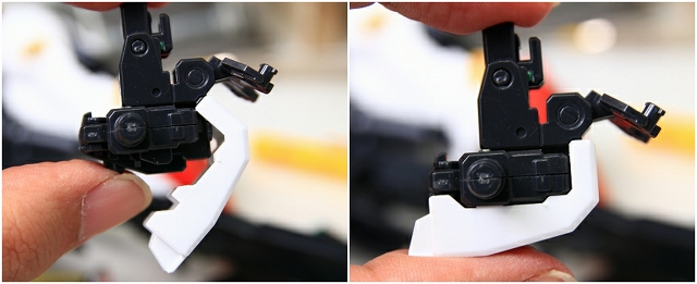 さきほど足スネフェアリングBで説明しましたが、足甲の白パーツは可動します。