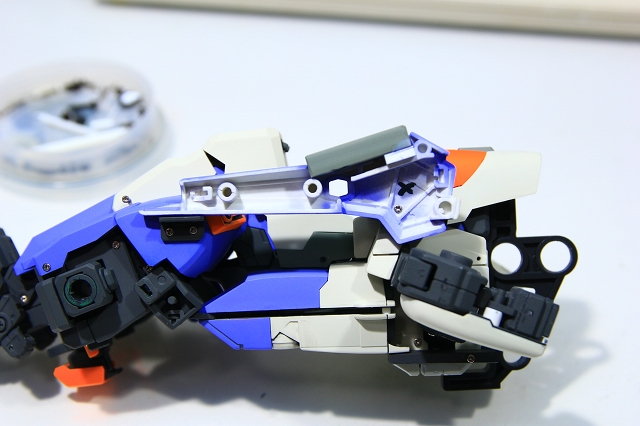 Gクル形態の場合、頭部は収納されてほとんど見えなくなります。このあとフレーム強化を行うためのスペースが欲しいので、頭部はオミットする予定です。