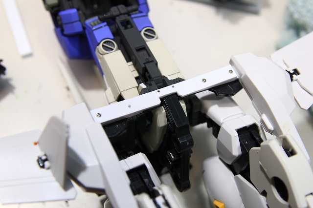 プラ材でマウントを追加。ネジ固定。これで胸部とのジョイントが完成。