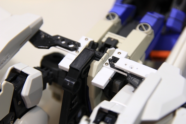 ガンプラは「可動・荷重・位置決め」を一つのギミックにまとめた設計が多いが、それだと強度も精度も耐久性も出ない。本来の機械設計ではその3つの機能は別々の部位で担当させるほう良い。そういう改造を行っています。