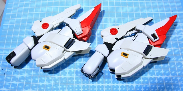 左がVer.1.0、右がVer.1.5。機体後部がボリュームアップしています。ほんの少しの変更ですが、これによってZZガンダムとの共通性を感じるラインになりました。当初はVer.1.5で組んでいましたが、周辺パーツとの兼ね合いでVer.1.0に変更しました。