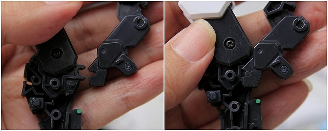 そのベースになるパーツも一度組むと分解がほぼ不可能。ノーマル素組みならOKですが、分解や改造をするなら対策は必須です。