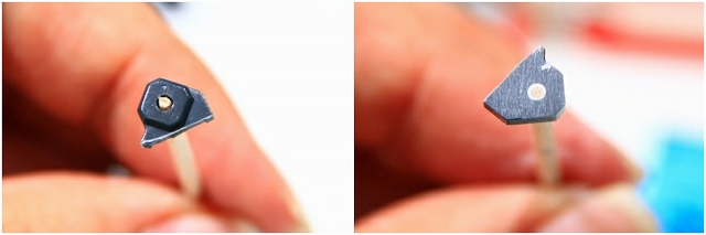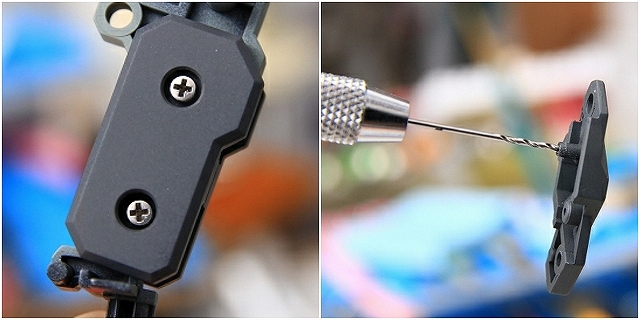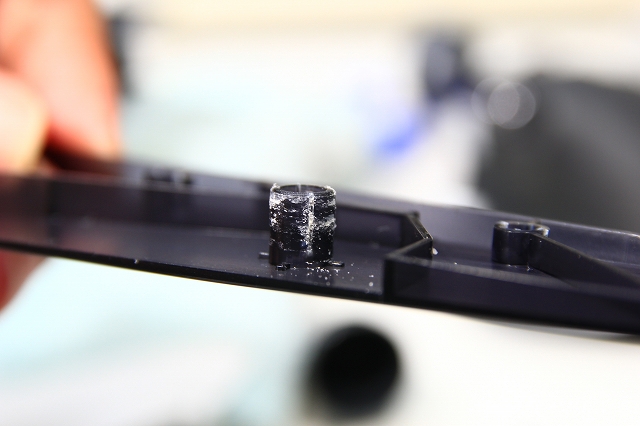 やはりスナップフィットを解除するのですが、穴径を大きくしすぎるとユルユルになるし、透明パーツなのでキレイな穴を開けたい。市販のドリルは3mm以上になると0.5mmおきなので微調整には使えない。0.1mm単位のドリルは高額になりますが、必須ですね。